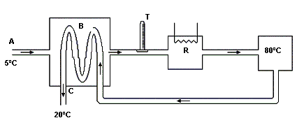sendo aquecido (no trocador de calor B) pelo leite que já