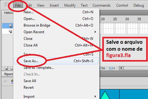 2º Passo: Salve o arquivo como figura1.fla (o .fla é apenas a extensão do arquivo fonte, na hora de salvar, você não precisar escrevê-lo, bastando escrever figura1).