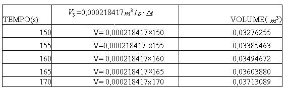 Utilizando os dados encontrados, podemos observar nas tabela e encontrar o volume para diferentes tempos para cada abertura da torneira.