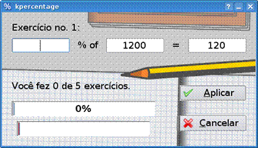Exercitar Porcentagens: clicar em Iniciar » Programas Educacionais » Matemática » Exercício de Porcentagens (Kpercentage).